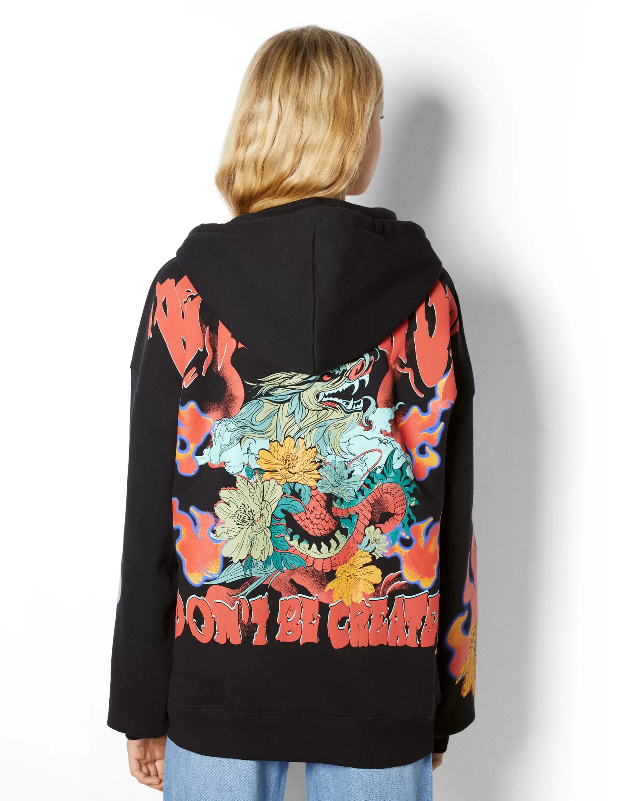 MUJER BERSHKA Sudadera capucha cremallera print varsity
