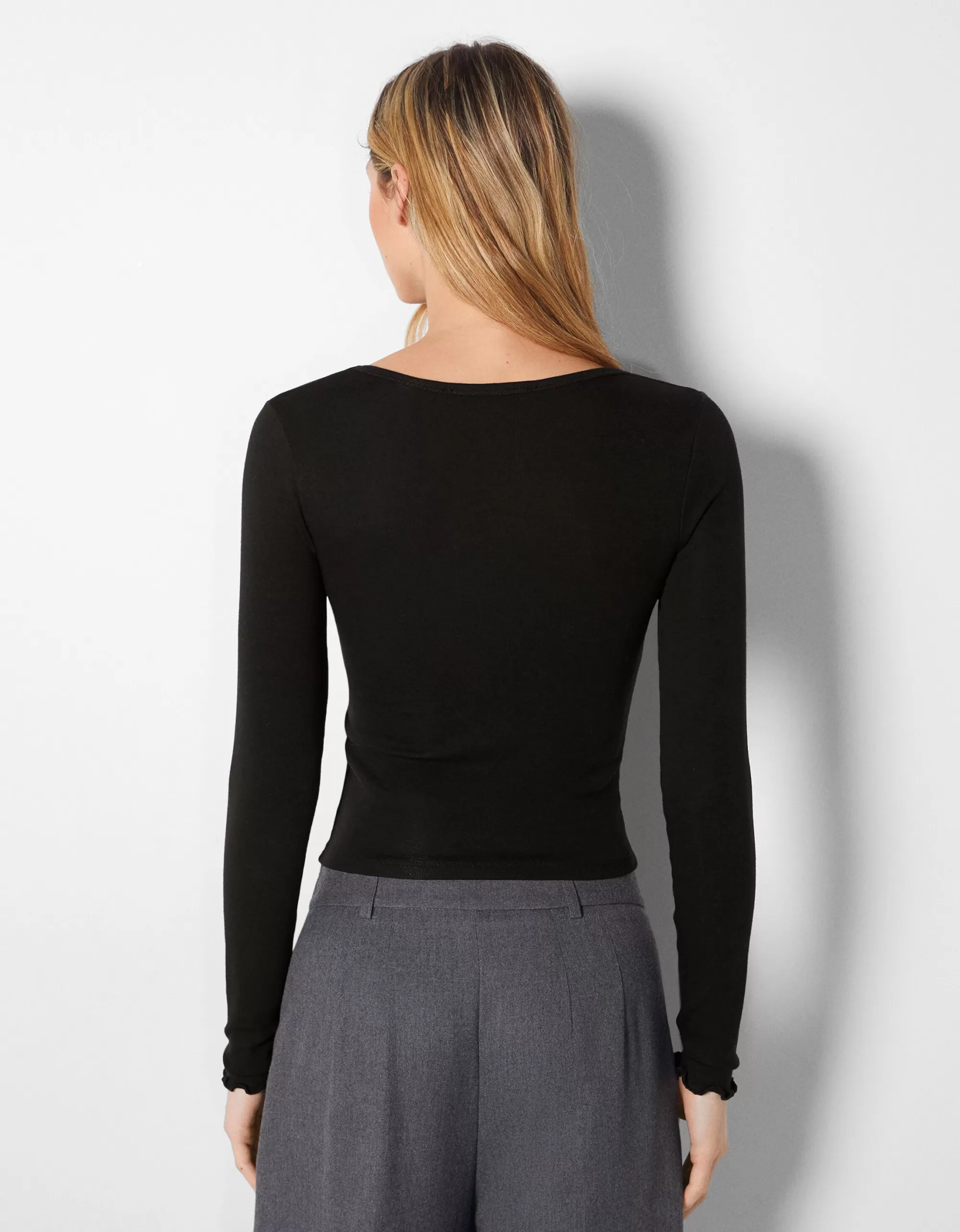 MUJER BERSHKA Camiseta manga larga cruzada