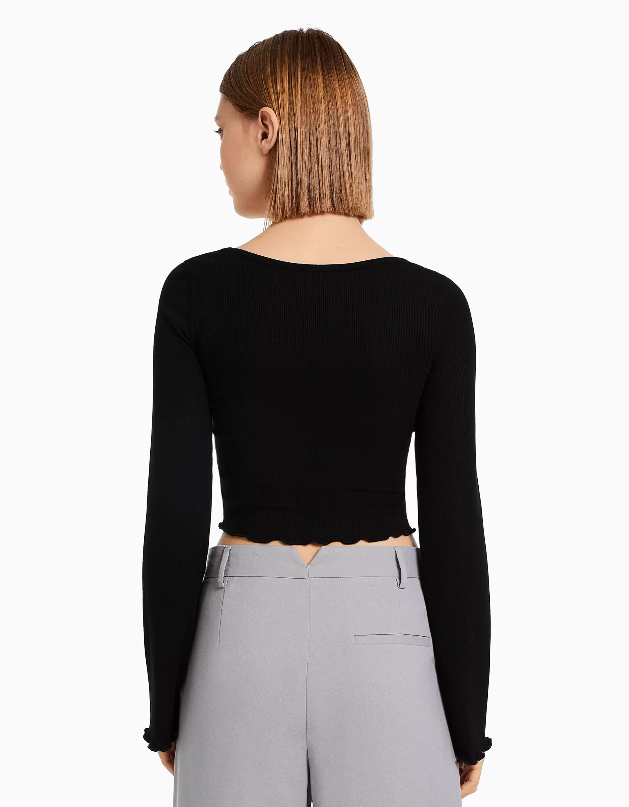MUJER BERSHKA Camiseta manga larga cuello redondo