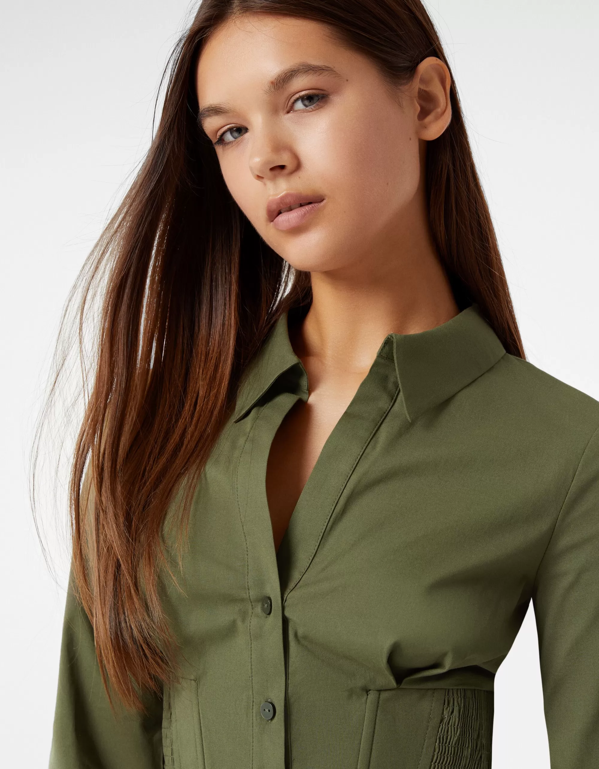 MUJER BERSHKA Camisa corsé manga larga ajustada popelín