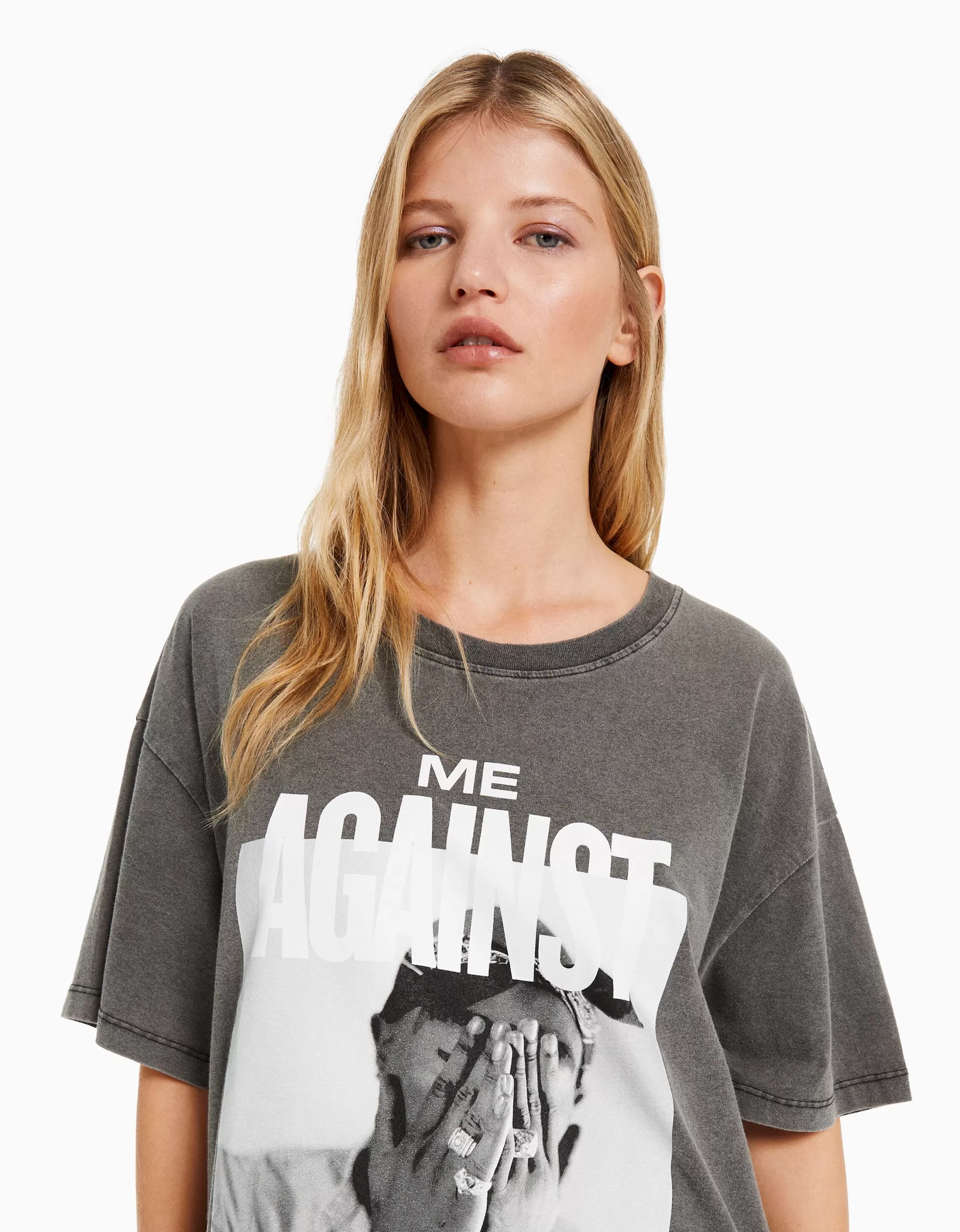 MUJER BERSHKA Camiseta manga corta print Tupac
