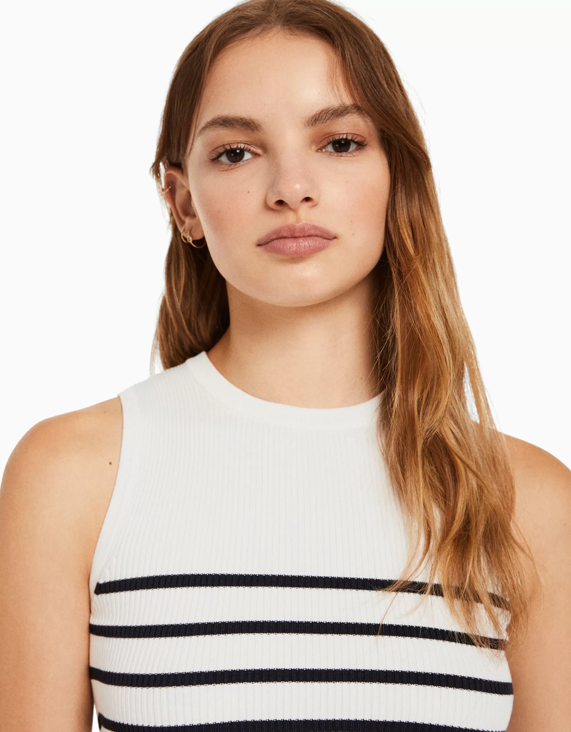 Be the first to review “MUJER BERSHKA Top sin mangas punto rayas” Cancelar la respuesta