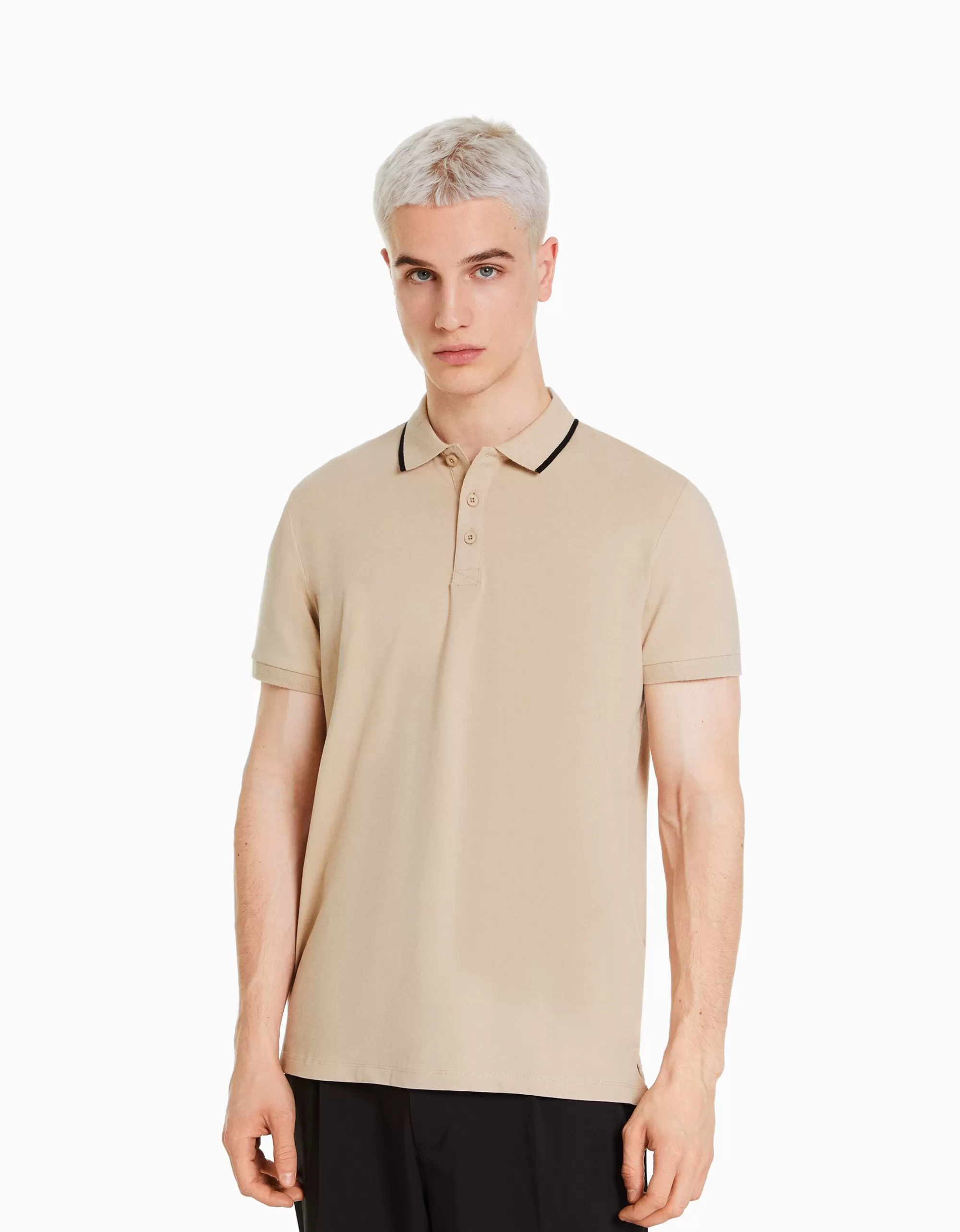 HOMBRE BERSHKA Camiseta manga corta cuello polo bandas